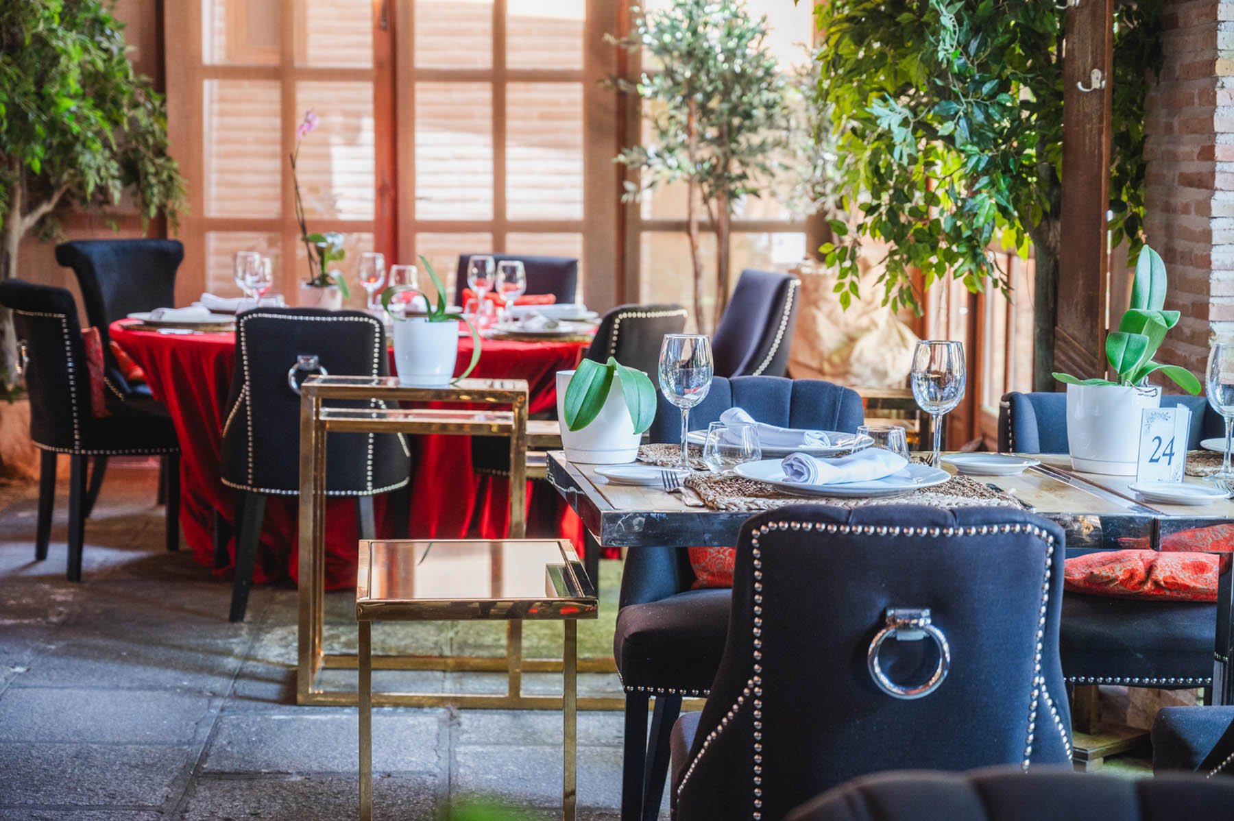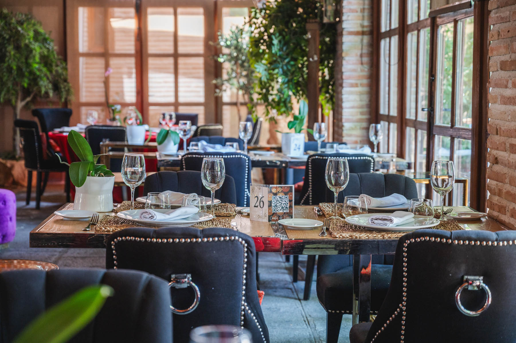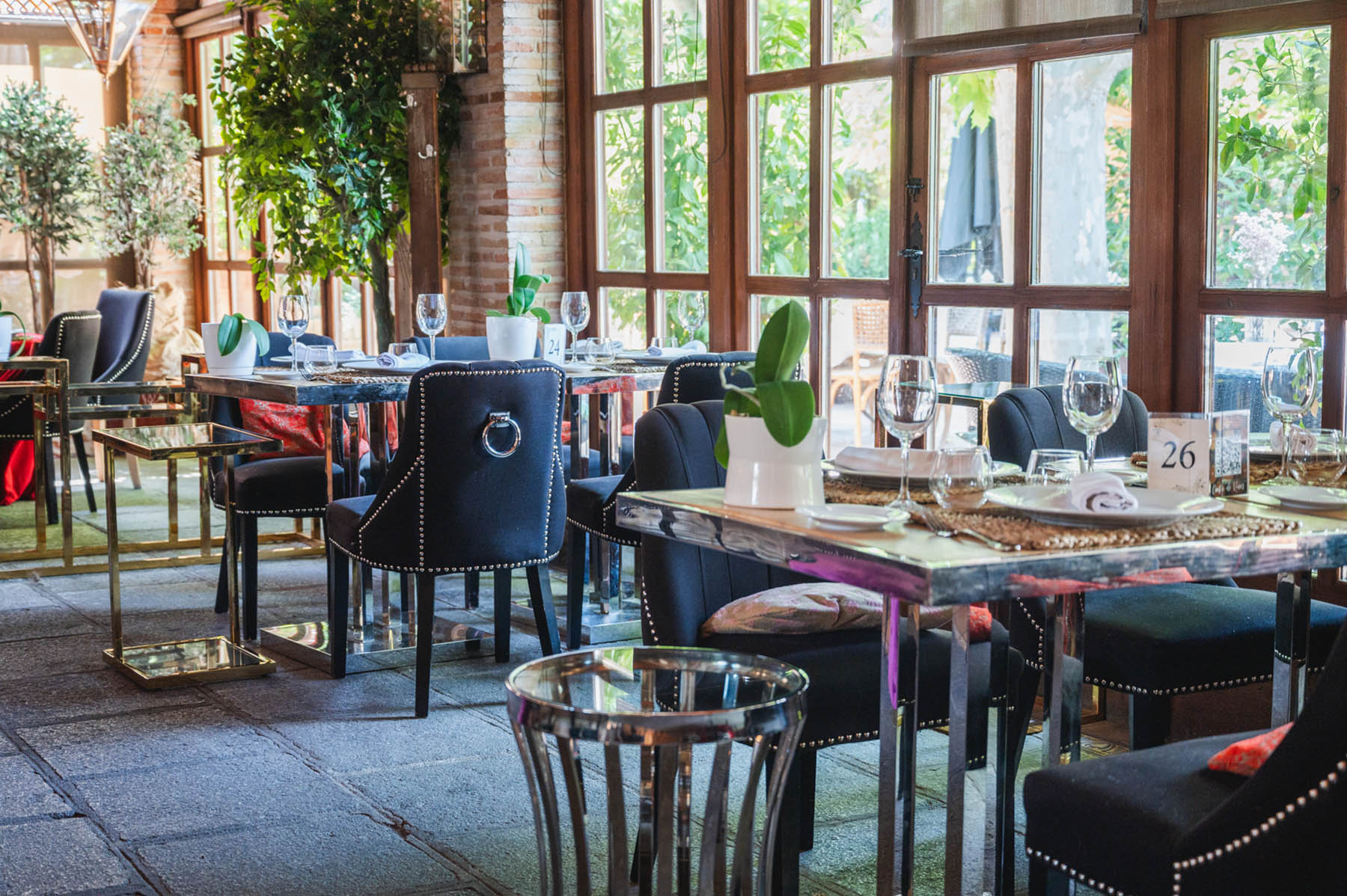 Las grandes puertas de madera y cristal que separan el salón de nuestra fantástica terraza se pueden abrir para que la experiencia gastronómica sea aún más placentera. Podrás comer y estar en contacto con la naturaleza sin estar directamente en el exterior. Nuestra galería acristalada es muy luminosa y está decorada con el sabor del paso del tiempo sin olvidar la comodidad y últimas tendencias actuales en decoración.
