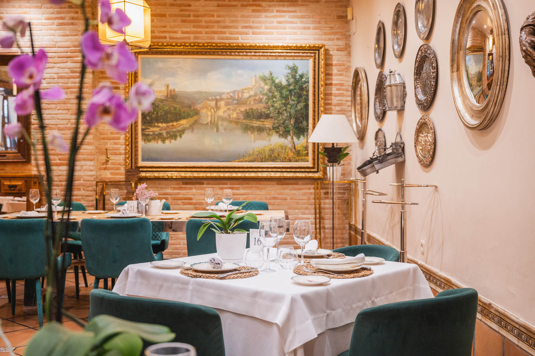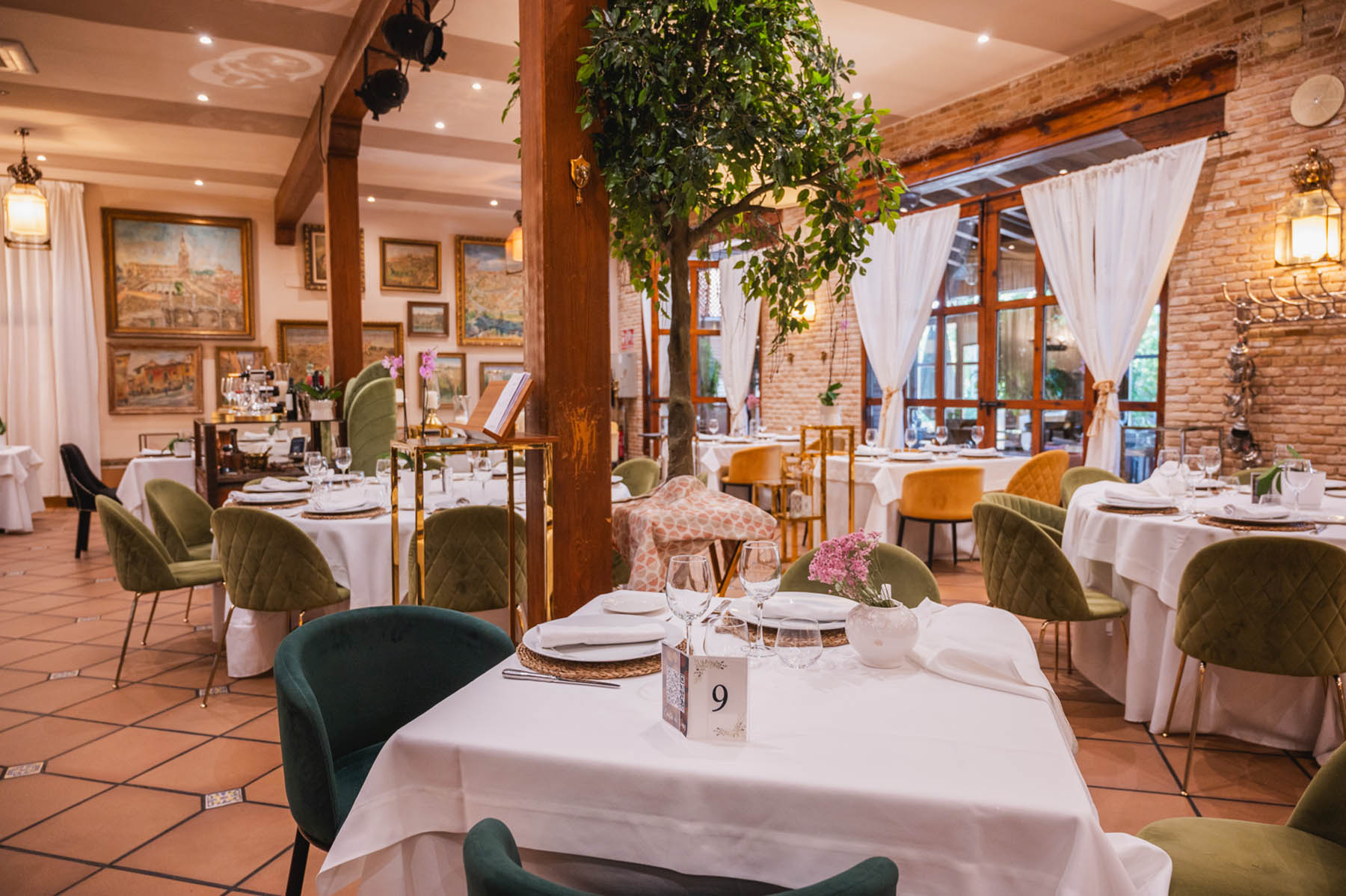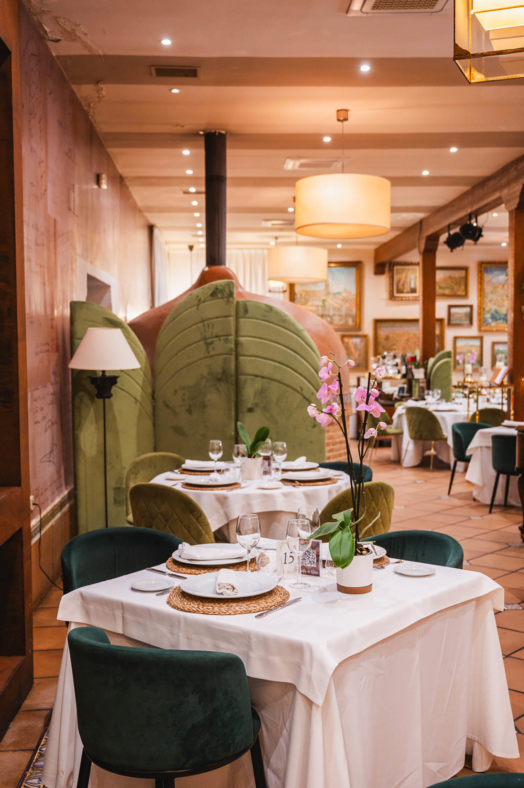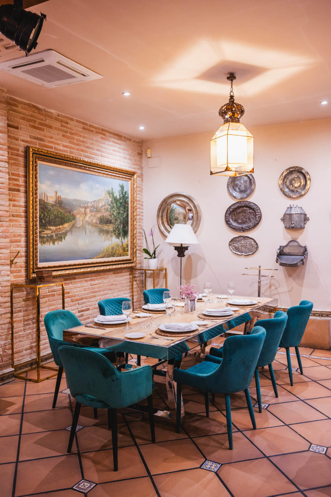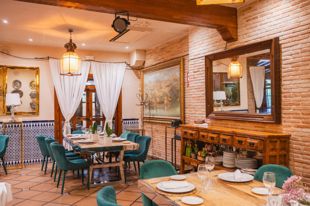 En el centro del salón está nuestro gran horno de leña en el que asamos los grandes manjares de la cocina de caza de Castilla-La Mancha (Piernas de cordero, paletilla de cordero, cochinillo asado, etc.). Con un ambiente muy acogedor podrás pasar una velada inolvidable, mientas lees en una de nuestras paredes la cantidad de firmas y reconocimientos de personalidades famosas de la historia que han pasado por este salón.