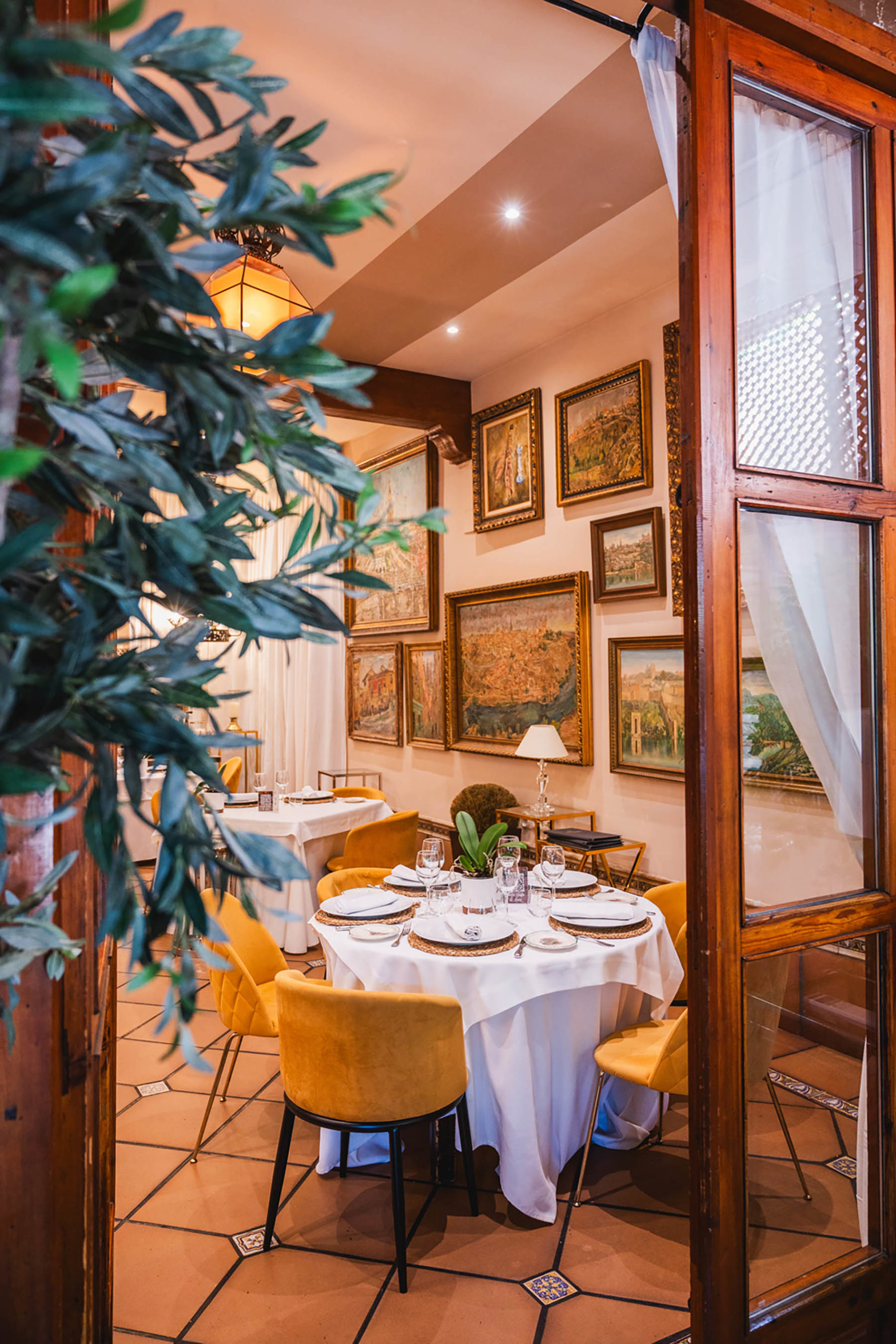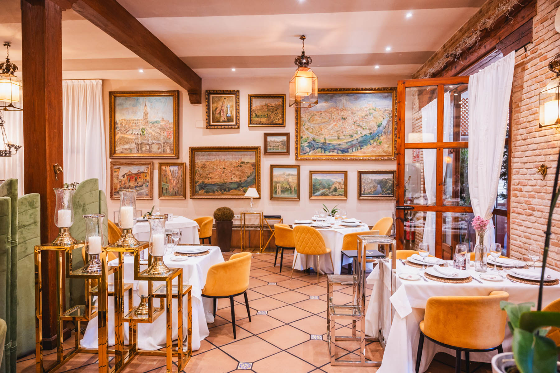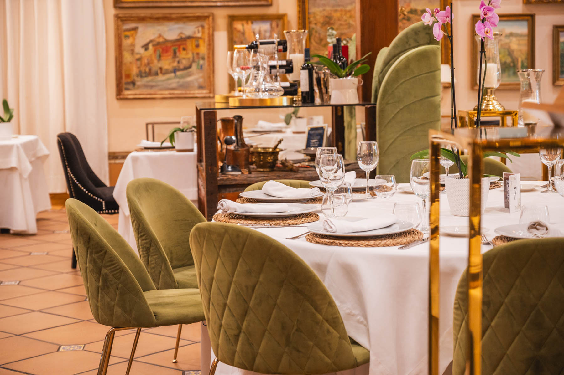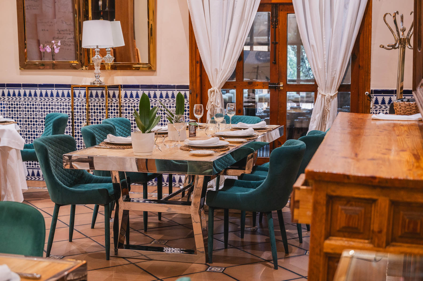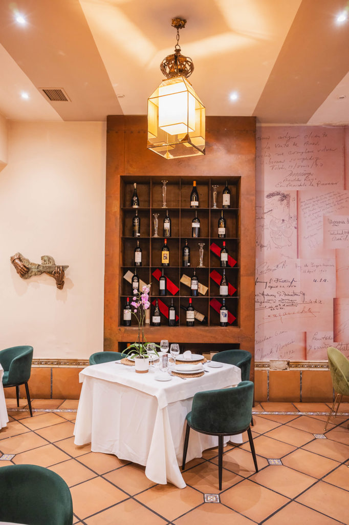 En el centro del salón está nuestro gran horno de leña en el que asamos los grandes manjares de la cocina de caza de Castilla-La Mancha (Piernas de cordero, paletilla de cordero, cochinillo asado, etc.). Con un ambiente muy acogedor podrás pasar una velada inolvidable, mientas lees en una de nuestras paredes la cantidad de firmas y reconocimientos de personalidades famosas de la historia que han pasado por este salón.